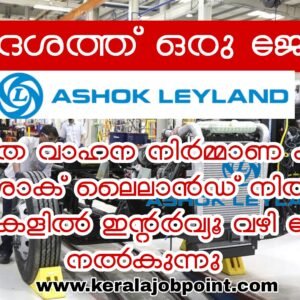 അശോക് ലെയ്ലാൻഡിൻ്റെ കീഴിൽ യുഎഇ യിൽ തൊഴിൽ അവസരംകേരള ഗവൺമെന്റിന്റെ വിജ്ഞാനകേരളം പദ്ധതിയുടെ ഭാഗമായി കൊല്ലം മയ്യനാട് ഗവ ഐടിഐയിൽ വെച്ച് 05/02/2025ന് ദുബായ് ആസ്ഥാനമായുള്ള Ashok…