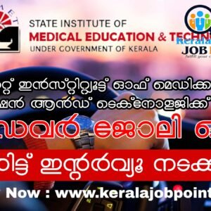 സിമെറ്റ് കോളേജ് ഓഫ് നഴ്സിംഗ്, താനൂർ (സ്റ്റേറ്റ് ഇൻസ്റ്റിറ്റ്യൂട്ട് ഓഫ് മെഡിക്കൽ എജ്യുക്കേഷൻ ആൻഡ് ടെക്നോളജിക്ക് കീഴിൽ). ഡ്രൈവർ ജോലി ഒഴിവിൽ യോഗ്യരായവരെ നിയമിക്കുന്നതിനായി നേരിട്ട് ഇന്റർവ്യൂ…