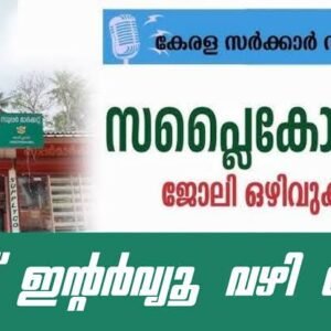 കേരള സ്റ്റേറ്റ് സിവിൽ സപ്ലൈസ് കോർപ്പറേഷനിൽ (സപ്ലൈകോ)യിൽ ക്വാളിറ്റി അഷ്വറൻസ് ജൂനിയർ മാനേജർ, പാഡി ക്വാളിറ്റി അഷ്വറൻസ് ട്രെയിനി എന്നീ തസ്തികകളിൽ കരാർ അടിസ്ഥാനത്തിൽ നിയമനം നടത്തുന്നതിനായി…