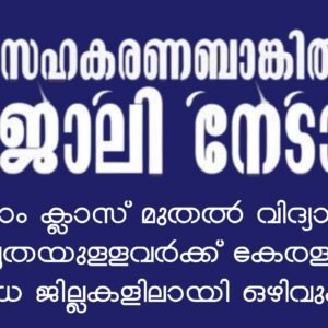 ഓഫീസ് സ്റ്റാഫുകൾ ഉൾപ്പെടെ നിരവധി ജോലി ഒഴിവിലേക്ക് തൊഴിൽമേള സംഘടിപ്പിക്കുന്നു ചവറ ബ്ലോക്ക് പഞ്ചായത്തിന്റെ നേതൃത്വത്തിൽ വിജ്ഞാന കേരളം പദ്ധതിയുടെ ഭാഗമായിമെഗാ തൊഴിൽമേള സംഘടിപ്പിച്ചിരിക്കുന്നു. ഒക്ടോബർ 10…