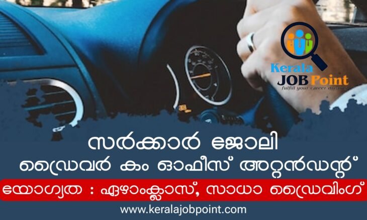ഡ്രൈവർ കം ഓഫീസ് അറ്റൻഡന്റ് തസ്തികയിലേക്ക് കരാർ അടിസ്ഥാനത്തിൽ നിയമനം നടത്തുന്നതിനായി അപേക്ഷ ക്ഷണിച്ചു