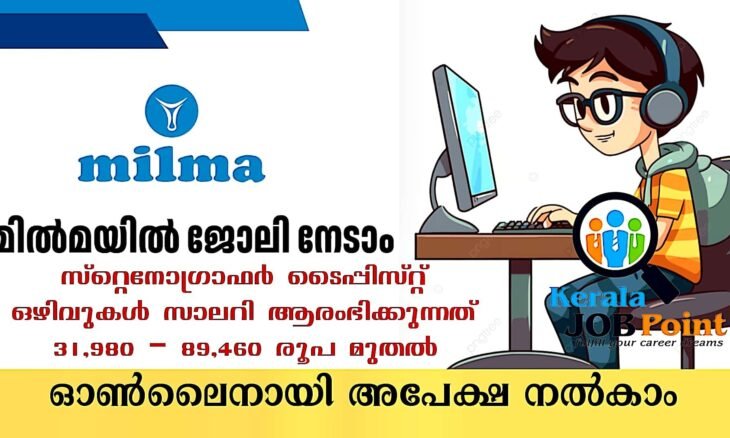 കേരള കോ-ഓപ്പറേറ്റീവ് മിൽക്ക് മാർക്കറ്റിംഗ് ഫെഡറേഷൻ ലിമിറ്റഡിൽ (KCMMF Ltd) സ്റ്റെനോഗ്രാഫർ ഗ്രേഡ് II / സ്റ്റെനോ-ടൈപ്പിസ്റ്റ് ഗ്രേഡ് II തസ്തികയിലേക്ക് ഓൺലൈനായി അപേക്ഷ ക്ഷണിക്കുന്നു.