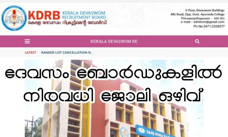കേരളത്തിലെ വിവിധ ദേവസ്വം ബോർഡുകളിലെ (തിരുവിതാംകൂർ, കൊച്ചി, മലബാർ, ഗുരുവായൂർ, കൂടൽമാണിക്യം) ഭരണപരവും ക്ഷേത്ര സംബന്ധവുമായ ഒഴിവുകളിലേക്ക് ഉദ്യോഗാർത്ഥികളെ തിരഞ്ഞെടുക്കുന്നു