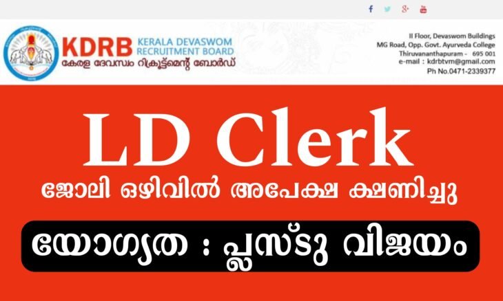 കേരള ദേവസ്വം റിക്രൂട്ട്മെൻ്റ് ബോർഡിൻ്റെ ഔദ്യോഗിക വെബ് സൈറ്റായ www.kdrb.kerala.gov.inലൂടെ ഒറ്റത്തവണ രജിസ്ട്രേഷൻ നടത്തിയ ശേഷം ഓൺലൈനായി സമർപ്പിക്കുന്ന അപേക്ഷകൾ മാത്രമേ സ്വീകരിക്കുകയുള്ളൂ. ഇതിനോടകം രജിസ്ട്രേഷൻ ചെയ്തിട്ടുള്ള ഉദ്യോഗാർത്ഥികൾക്ക് അവരുടെ പ്രൊഫൈൽ വഴി അപേക്ഷിക്കാവുന്നതാണ്.