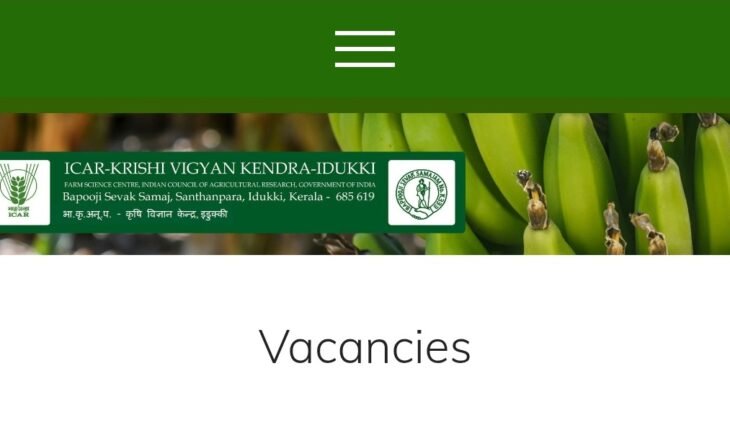 The ICAR-Krishi Vigyan Kendra (KVK) in Santhanpara, Idukki, has announced a direct recruitment drive for three regular positions under the Bapooji Sevak Samaj