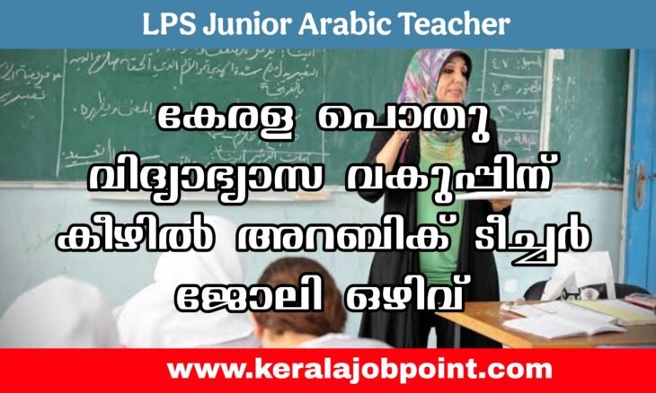കേരള സർക്കാരിന്റെ പൊതുവിദ്യാഭ്യാസ വകുപ്പിന് കീഴിൽ പാർട്ടിയും ജൂനിയർ ലാംഗ്വേജ് ടീച്ചർ അറബിക് LPS തസ്തികയിലേക്ക് യോഗ്യരായ ഉദ്യോഗാർത്ഥികളിൽ നിന്നും അപേക്ഷകൾ ക്ഷണിക്കുന്നു