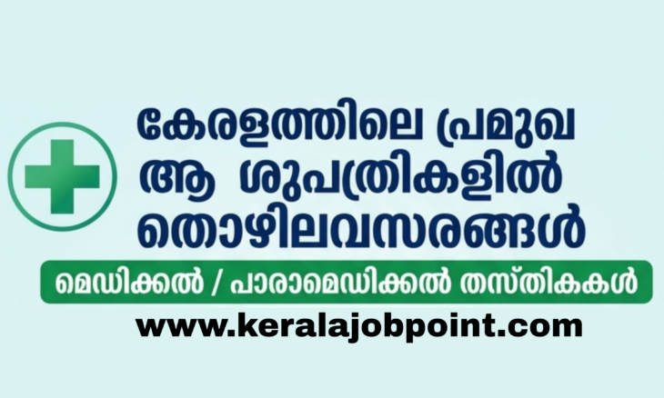 കേരളത്തിലെ വിവിധ ജില്ലകളിലായി ഉള്ള ഹോസ്പിറ്റലുകളിൽ ഇപ്പോൾ വന്നിട്ടുള്ള മെഡിക്കൽ പാരാമെഡിക്കൽ ജോലി ഒഴിവുകൾ