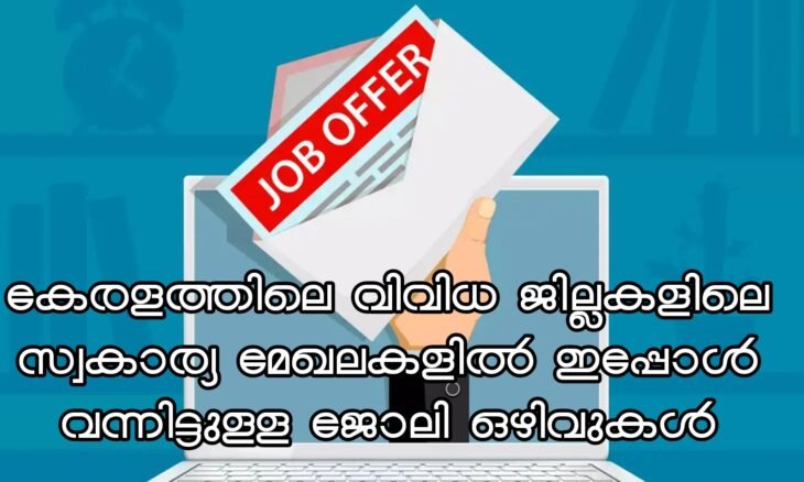 കേരളത്തിലെ വിവിധ ജില്ലകളിലായി ഇപ്പോൾ വന്നിട്ടുള്ള സ്വകാര്യമേഖലകളിലെ ജോലി ഒഴിവുകൾപ്രധാന ജോലി ഒഴിവുകൾ താഴെ പറയുന്നവയാണ്:
