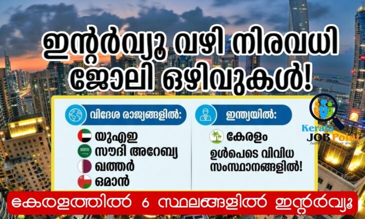 - വിദേശ അവസരങ്ങൾ: യുഎഇ, സൗദി അറേബ്യ, ഖത്തർ, ഒമാൻ തുടങ്ങിയ രാജ്യങ്ങളിലേക്കും അപേക്ഷിക്കാം.